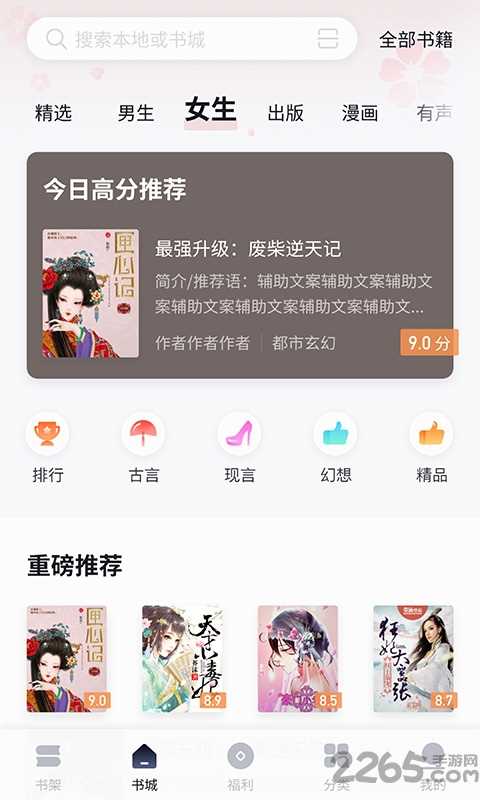 阅读软件。涵盖网文、漫画、出版和有声书,类别覆盖言情、玄幻、历史、军事、校园、影视同名小说。书城免读。EBK3/TXT/UMD/EPUB/CHM/PDF全主流阅读格式。功能强大,个性时尚,界面简约,与各大出版社进行深度战略合作,拥有广阔图书资源。