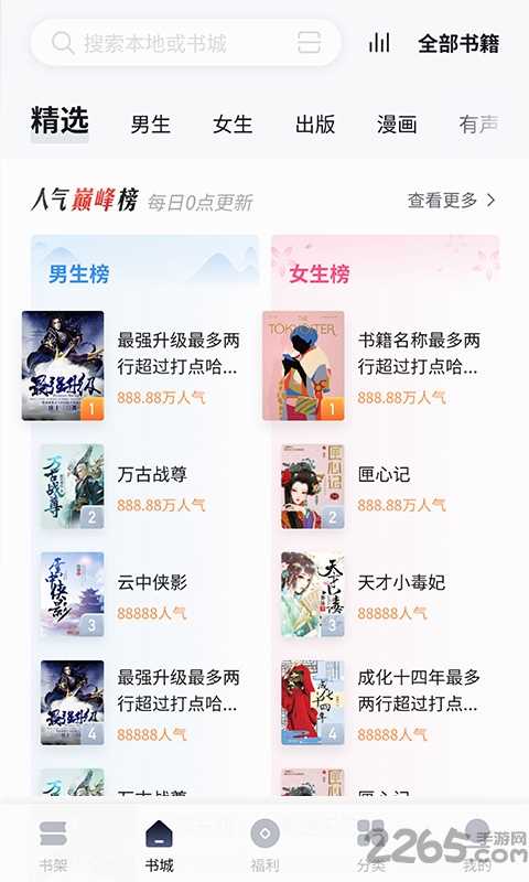 【海量书库】30万册图书书城,包括了各种精品出版物与网络原创小说。