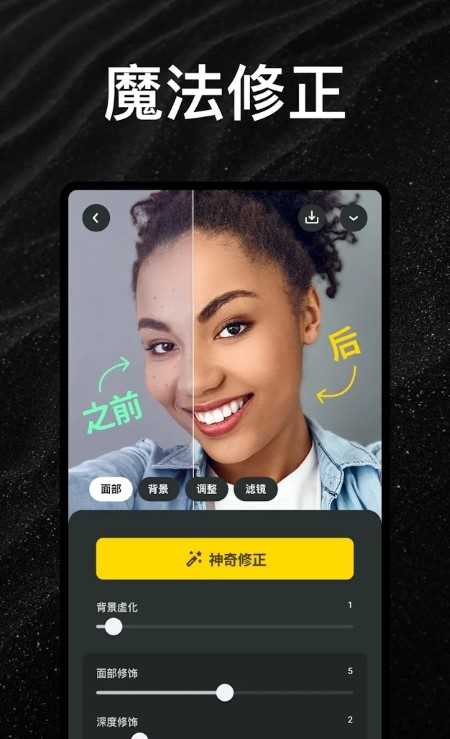 使用肌肤编辑器功能,能够轻松编辑图片,它可以让您的每张照片变得更清晰,帮您卸妆,或者套用您选择的任何其他美容滤镜。使用身体编辑器功能移除每个瑕疵,将焦点放在您想要编辑的身体上。