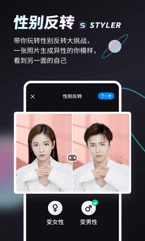 styler是一个拥有炫酷潮流风格的图片特效相机的app,包括性别反转、漫画脸、时光机、动态照片、老照片修复特效,支持多种潮流特效玩法,带你玩转潮流炫酷特效,提供多种特效模板,体验不一样的奇幻之旅。