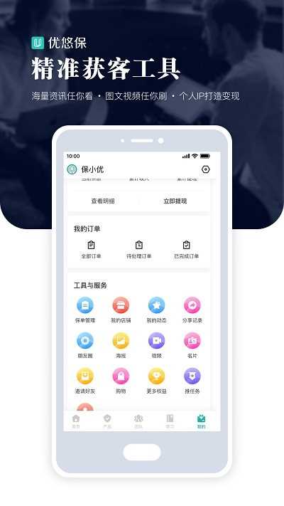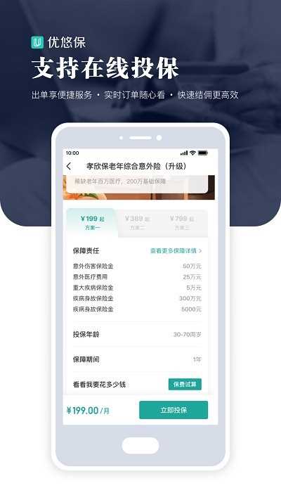 优悠保致力于改变传统模式,实现互联网扁平化管理,降本增效反哺保险从业者,促进行业长足健康可持续发展的综合性服务平台。优悠保是经中国保险行业协会披露、京东科技旗下的专业保险服务平台,专注于赋能广大保险从业者,提供创新技术服务和销售支持。 大平台可信赖!精选获客营销素材、计划书/产品分析全新升级上线,涵盖100多家保险公司、1500多款保险产品。轻松展业、助力职涯启航数字化,签单快人一步!