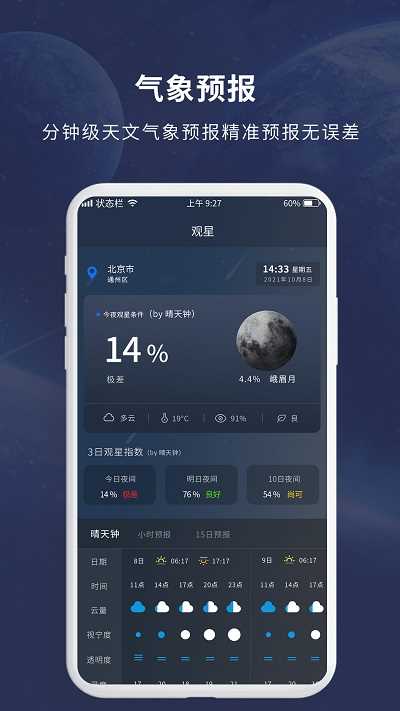 天文大师还有专业的观星工具:分钟级天文气象预报,精准预报无误差,帮您实时查看本地天气情况!