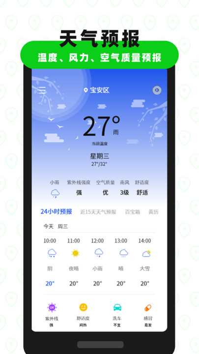 1.天气预报:提供实时天气预报,出行旅游逛街约会运动天气早知道