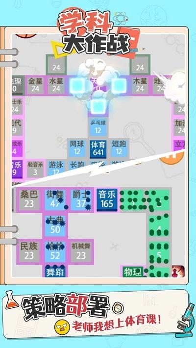 学科大作战游戏为大家带来有趣的闯关玩法,发挥你的头脑风暴吧,在游戏中来进行闯关,每个关卡都有不一样的任务,合理的安排部署来进行游戏,直到完成最后的关卡,来试试吧,看看哪个科目才是最后的胜利者,玩法多样有趣,赶紧来挑战。学科大作战官方版介绍基于策略