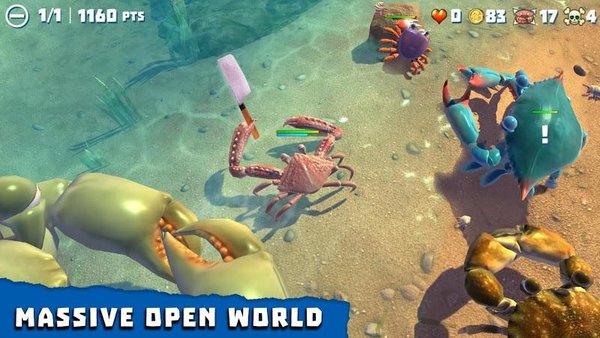 2.趣味的战斗,控制你的螃蟹和其他的玩家们进行激烈的对战,去寻找强大的武器,享受这个战斗的乐趣;