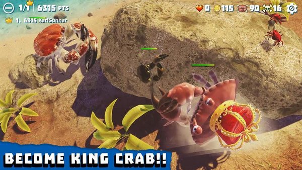 螃蟹之王(King of Crabs)手游是一个趣味的动作格斗冒险类型的游戏,在这个独特的游戏世界之中玩家们将会去进行控制一只螃蟹进行激烈的战斗冒险,和其他的玩家们进行对战,还能去在地图之中寻找各种各样的武器,让你能更加轻松的享受这个战斗.