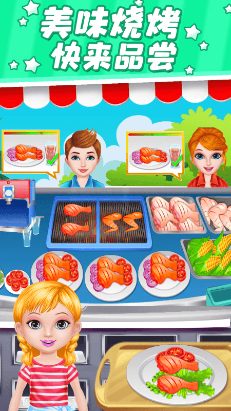 烧烤餐厅:各式各样的美食烤串,完成烤串任务。