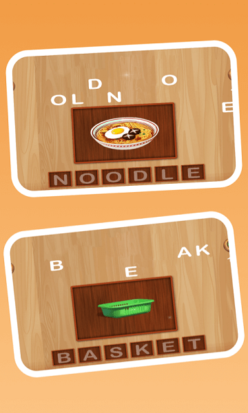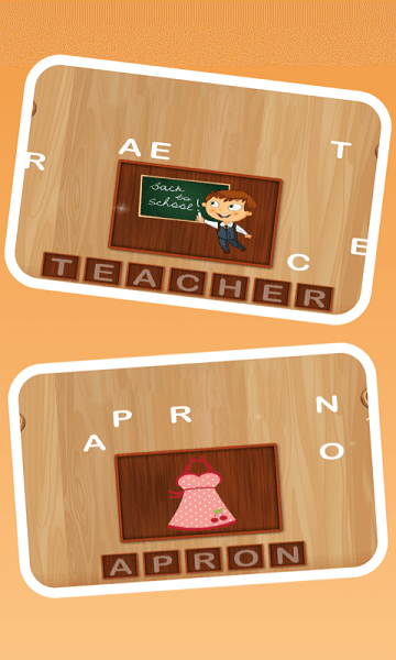 有动物单词、食物单词等多类单词,例如点食物类,会出现对应食物的英语单词字母,按正确的顺序把字母移至相应位置,让您在游戏中轻松记住单词。