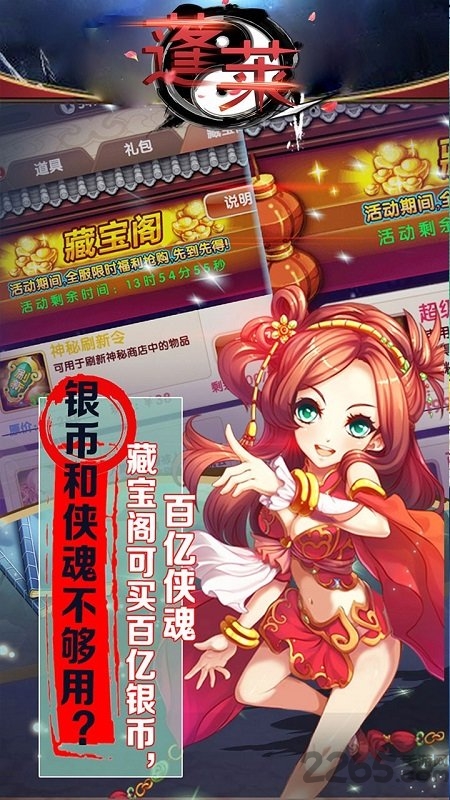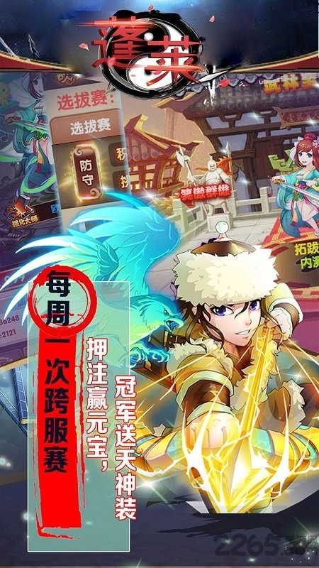果盘蓬莱满v变态版是一款国风武侠卡牌游戏,玩家在游戏中提现最原汁原味武侠世界,游戏原画师是由国手级进行设定!主要以金庸武侠小说风格为主,同时游戏打斗技能特效炫酷的鲜果,极具画面冲击力与刺激感!快来2265安卓网下载吧!果盘蓬莱变态版简介《蓬莱》巅峰武