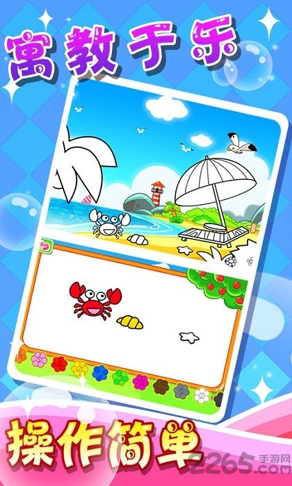 幼儿学画画亲爱的宝贝,你喜欢画画吗?喜欢临摹吗?喜欢鲜艳的颜色吗?超级有爱的画画涂鸦功能,已经5个不同的可配色场景动物园、公路、海底世界、沙滩、游乐园,可以对2265游戏场景中的每个部件进行单独配色创造出属于自己的作品。