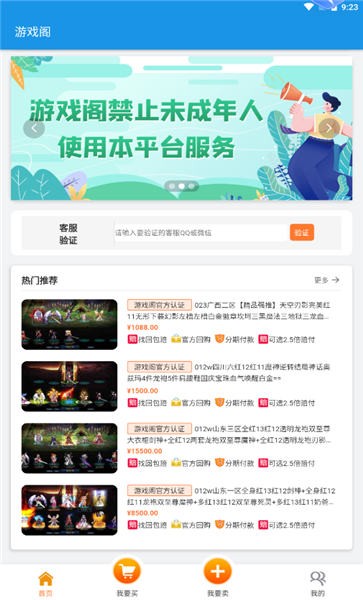 游戏阁交易平台一款支持各大热门手游,端游的账号交易软件,平台提供安全可靠的交易环境,精选了各种优质的游戏账号一键下单即可快速交易,充价格,类型,游戏档位多方面选择入手,有需要的话就快来下载吧。游戏阁app简介1.选号:设定交易类型、商品类型、价格、游