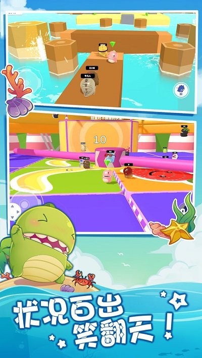 ·在这个游戏中你既可以体验到简化版的糖豆人超多人冲关、生存竞技玩法;也可以体验到类似马里奥派对的 2v2、3v3、4v4 的人数更少的小组派对对抗
