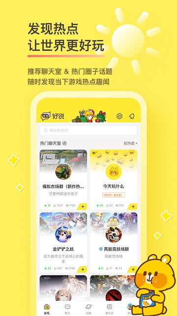 好说官方版是一款主打游戏社区及游戏攻略等功能的圈子应用。集合了多个热门游戏,还有一些新的游戏推荐及下载功能,让喜欢玩游戏的你拥有一个全新的平台,丰富的游戏内容让你更好的去感受游戏的乐趣,赶快来下载试试吧!好说app介绍汇集了海量游戏玩家,你可以自由
