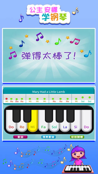 公主安娜学钢琴是一个专为婴幼儿和初级钢琴学习的孩子而设计的钢琴练习软件,专为初学、自学钢琴的小孩量身打造,一对一教程指导,帮助小朋友轻松入门,是让宝宝从学习乐谱、伴奏调知识理念,到大胆自由弹奏都可以轻松掌握钢琴弹奏技巧.