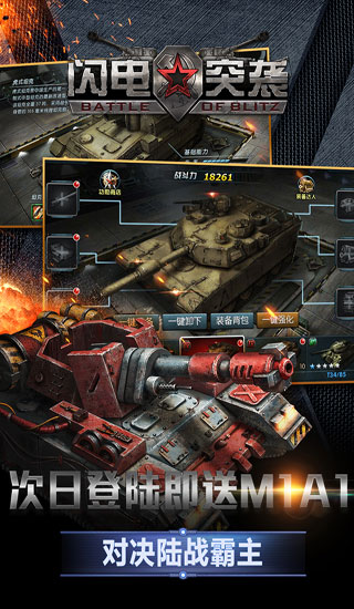 三大阵营重兵集结,打响国战第一炮!终于等到了!《闪电突袭》全新世界征服战资料片震撼开启!万千坦克同屏对决,铸造最热血的坦克手游!集合策略和国战经典玩法于一体的坦克游戏,传奇将领,万人国战,占领世界疆土,成就世界霸主梦。
