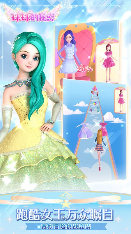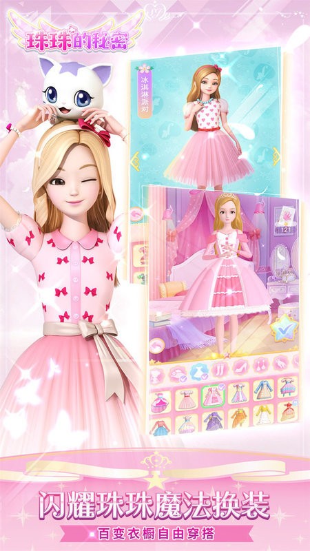 【3D角色 自由选择】 魔力魔力魔力,珠珠的秘密~珠珠、莉莉、艾琳、珍妮、莎莎等多位高人气角色上线游戏。精致细腻的3D形象、梦幻唯美的长裙、鲜艳精美的场景布局,还有超多趣味玩法,快来体验吧!
