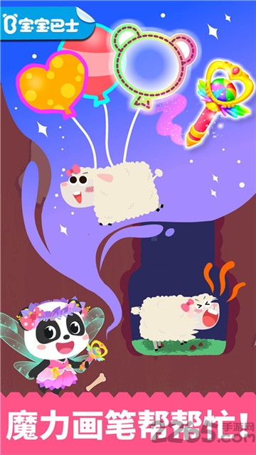 · 小羊掉进洞里了,该怎么办呢?快发挥想象力!有啦,用画笔画个气球,就能带小羊飞出洞,和羊妈妈团聚啦!