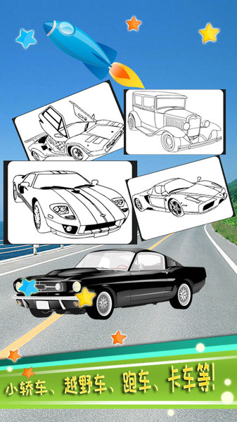1、轿车、卡车、货车、摩托车、跑车等多种车型,等待宝宝来涂色。 界是彩色的,宝宝的心也是彩色的,亲爱的爸爸妈妈们,记得多带您的宝宝到大自然中去散步哦!
