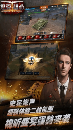 5、坦克的解锁与养成:我们提供10辆根据史实制作的经典坦克战车,细致的伤害模型,逼真的物理特性,如身临其境般体验最真实的二战坦克竞技战斗。每辆坦克搭配不同的弹药与装备,你的战车将会在作战御敌中不断升级,培养