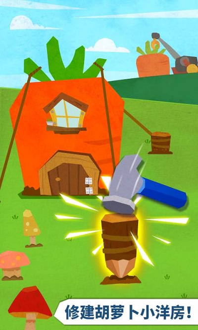 操作吊车拔起胡萝卜,拿起剪刀咔嚓咔嚓,修剪根须。摘一颗大西瓜,把它切成两半,铲出果肉。拼接蛋壳,涂抹泥巴粘补裂缝。别忘了清理罐头上的海草和贝壳。
