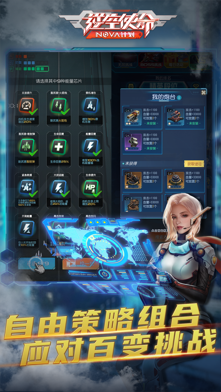 逆空使命官方版是一款飞行射击类的休息放置游戏,游戏将背景设置在未来太空时代,游戏中设置有多种不同机型的各色战斗机!游戏中还设置有各种不同风格的游戏场景,游戏操作比较简单,玩家只需要通过单手就可以继续操作!逆空使命游戏简介《逆空使命-NOVA计划》是款