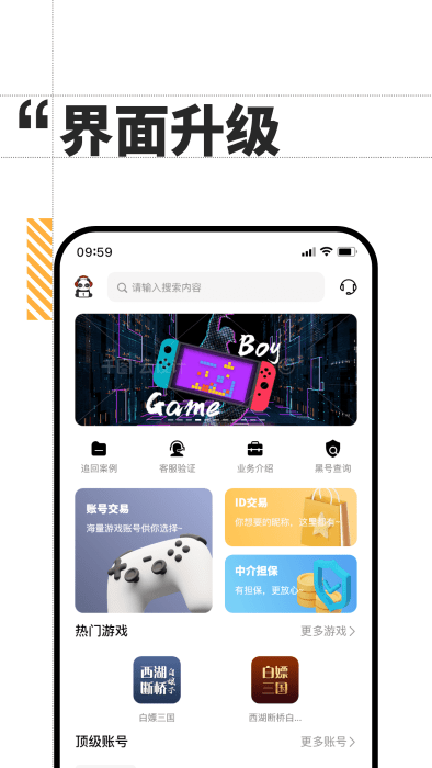 盼之代售app是一款十分不错的线上游戏账号交易平台,里面的游戏账号种类齐全,用户可以在里面找到自己想要购买的游戏账号,而且会有中介担保非常的安全可靠,不会因为买号而上当受骗,有兴趣的朋友快来下载看看吧!盼之代售官方版介绍专业的游戏交易平台服务商,坚