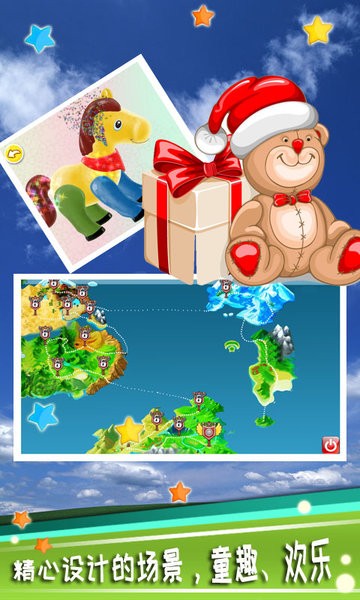 ·共15个关卡场景,分别有宝宝和2265儿童喜欢的鸭子、气球、马、飞机、鱼等,设计非常精致、唯美。