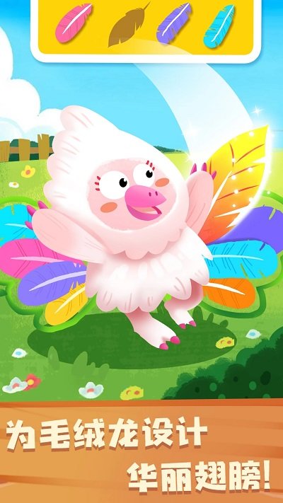 毛绒怪希望有一双翅膀,宝宝帮她完成心愿吧!拖动木棍,拼翅膀的骨架,再拖动藤条,搭翅膀的轮廓,接着去森林寻找羽毛,把羽毛装在模型上,翅膀就做好啦!