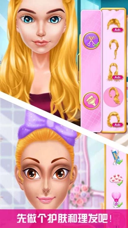 挑出一个新的发型和化妆。