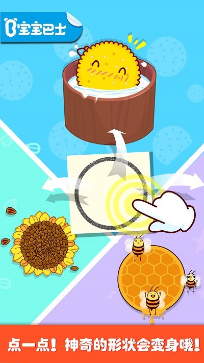 通过点点形状,变出各式各样的图案,宝宝对图形充满好奇,提升宝宝对图形的辨识度,激发宝宝对画画的兴趣。