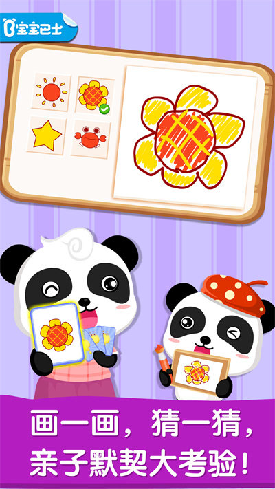 宝宝画妈妈猜是亲子互动游戏,用于培养宝宝的绘画和创造力,作画有两种方式,一种是自己创造,还有一种是2265宝宝可以照着我们提供的参照图来进行绘画,最主要的是有亲子互动,这大大的增强了游戏的趣味性,让你的宝宝从此爱上绘画。