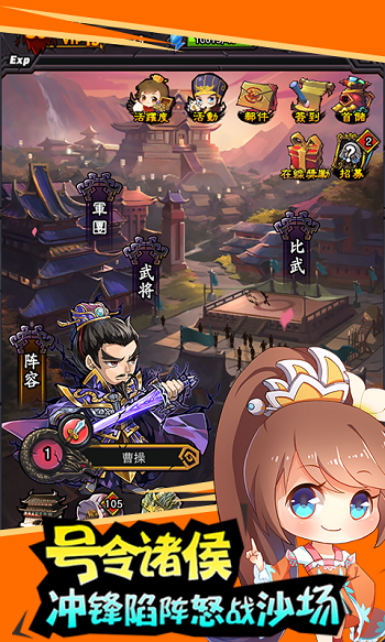 百万曹操传是一款经典怀旧风格的大型多人在线开启讨伐战争的策略类手游,玩家通过百万曹操传在游戏中是成为英雄气概的曹操,一场空前绝后的战争即将爆发,不知道你做好准备了吗?我在百万曹操传等你来哟!赶紧来下载体验吧!百万曹操传客户端简介:《百万曹操传》是