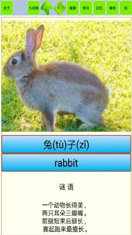 进入学习环节中学习知识,从卡片信息中知道动物形状以及相应的名称与拼音读法。