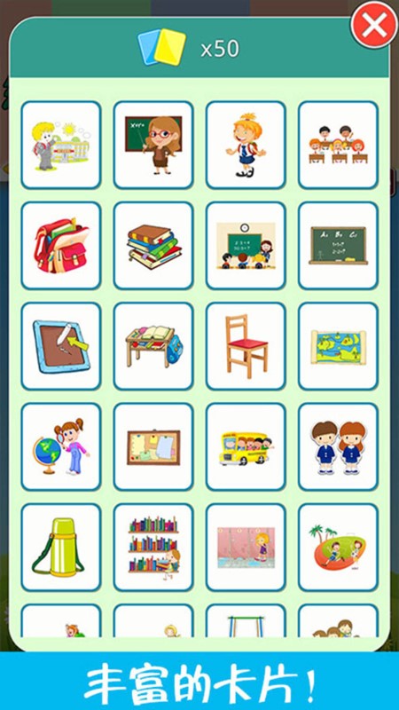 3.总共超过50 种关于学校的物品并且都加入了可爱的图片与中英文发音!