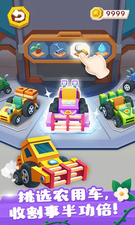 先来体验种植!咦,还有些土地尚未开垦?宝宝们快坐上耕地农用车,开始开垦耕地