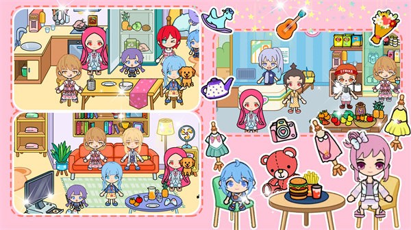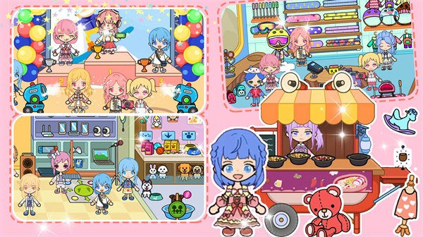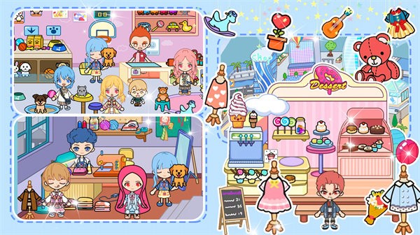 口袋学校小家是模拟口袋迷你甜心城市生活手游,有很多的卡通可爱角色,可以自由扮演不同的角色,为角色们搭配各种精美的服饰,也可以亲自去经营自己的咖啡店。