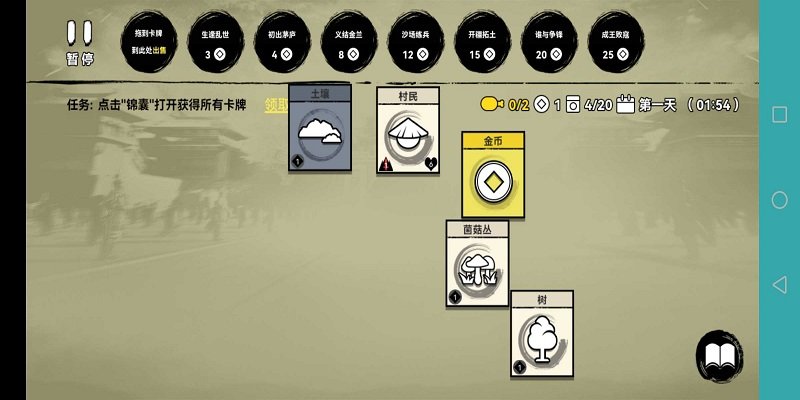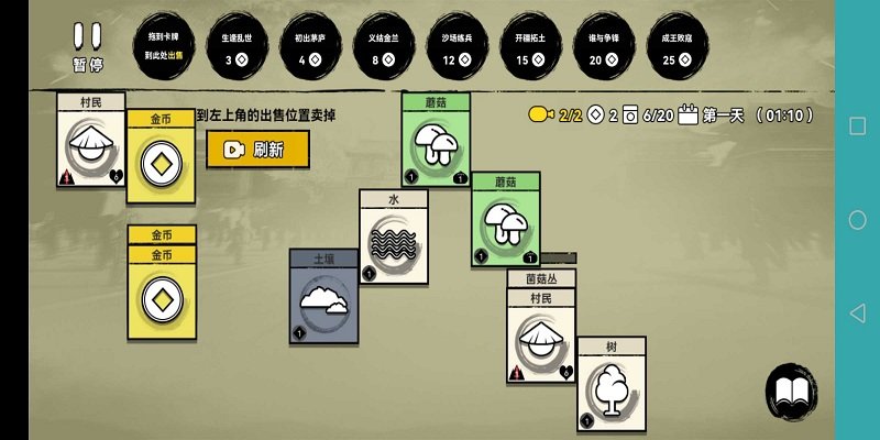 3、玩家可以去随意对里面的卡牌进行组合,让我们可以去应对各种不同的情况,享受刺激的生存经营。
