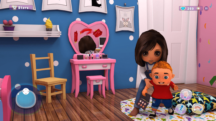 3、把她打扮得漂漂亮亮的、喂她吃饭、帮她洗泡泡浴等等,还有装饰宝宝的房子。
