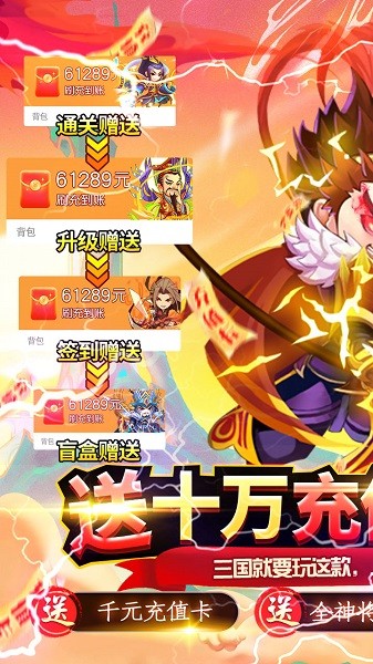 国手级原画师打造高精度三国题材策略卡牌游戏;致敬热血经典三国世界,一级高端影视特效,开局就领全部超神将,游戏每天上线免费领无限神将,十万充值、暴爽画面冲击感,2022年首选三国策略卡牌手游,畅享扣人心弦的极致对战体验,勾起你不羁的三国情怀。游戏最新版强势出击,福利爆炸爽翻天。无限元宝、每天免费赠送大量盲盒,无限资源天天领不停,不怕福利送的多,只怕你领到手软!