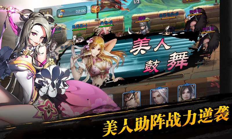 ·每个武将英雄都拥有形象各异的、独立的呆萌Q版战斗形象,通过独特的2D骨骼动画技术,加之炫酷的技能特效,一招一式都会带给你最逼真、酣畅淋漓的即时战斗爽快感。