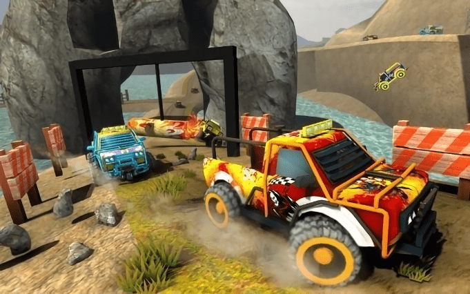 2.一个阳光明媚的沙滩里,玩家要驾驶超级英雄特技越野车进行各种搞笑有趣的特技极限车技动作。