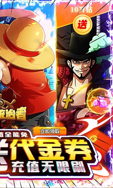 1、登陆就送V10、UR-龙马、10万钻石、材料招募令*100、贝利*100万,上线就当大佬,闯关毫无压力!