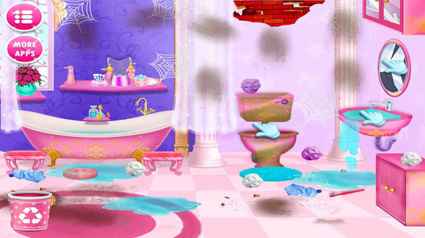 5.浴室清洁:浴室很脏,很臭!帮助小公主将垃圾扔进垃圾桶,扫地,擦洗污渍,修理破损的东西,如墙壁,镜子,洗脸盆管,重新排列砖块,清洁厕所等,