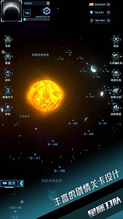 派遣你的星际舰队在宇宙空间进行例行巡航,以防虫族入侵和其他势力攻击,在此期间你会遭遇虫族舰队或其他玩家的舰队。