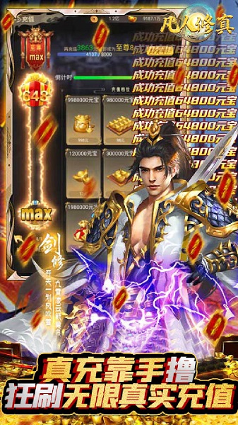 《凡人修真(科技金手指)》是一款特效华丽建模精致的仙侠游戏。GM定制系统,定制神剑、神盾任你挑选,GM修改器每日免费领取1亿元宝和1亿铜钱!三大修仙职业,修仙修魔修妖任你选择!最高10E战力!还原经典修仙世界!每日送加藤金手指无限免费刷648元充值!