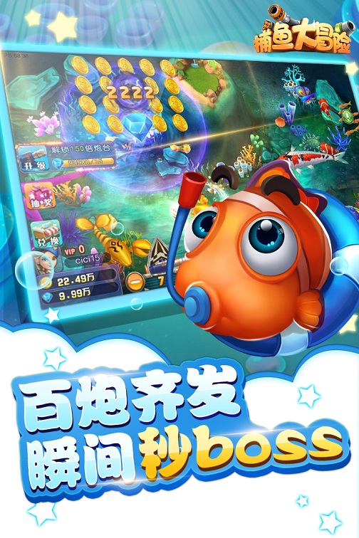 捕鱼大冒险官方版是一款采用街机捕鱼玩法打造的精品休闲手游。游戏玩法简单,趣味性比较强,在这里你随时随地都可以和真人玩家对战哦!这里更有多倍炮台竞技场、私人渔场、炮台锻造等热点玩法等你来下载体验呢!捕鱼大冒险最新版本玩法1、龙珠BOSS:每2分钟会出现一